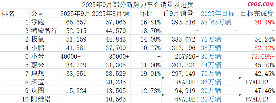 造车新势力9月成绩单:零跑汽车首破六万大关,零跑汽车【09863】
