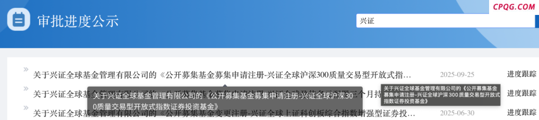 证监会网站信息显示,9月25日,兴证全球基金上报了一只名为“兴证全球沪深300质量ETF”的基金。如果该ETF获批,成立22年的兴证全球基金将迎来首只ETF产品。