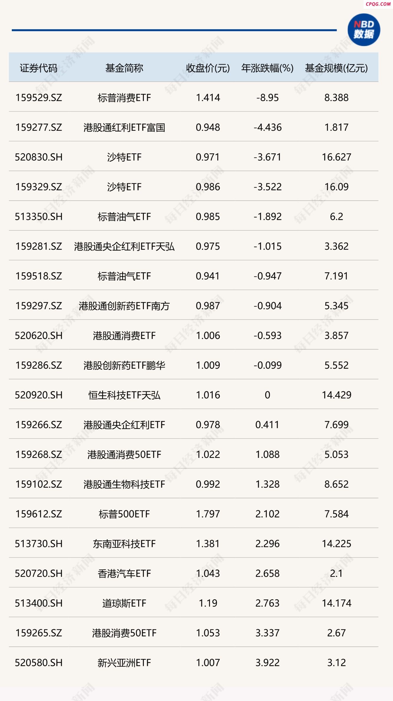 此外,港股通红利ETF富国、沙特ETF等跌幅超3%。