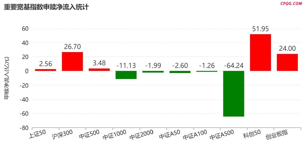 细分来看,主要宽基指数整体资金申赎统计显示,本周科创50净流入51.95亿元,中证A500净流出64.24亿元。