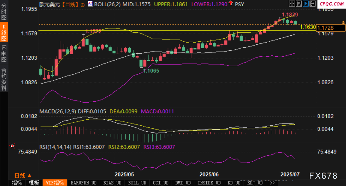 当前欧元承压回落的主要驱动因素来自美元的系统性反弹。随着7月9日临近,美国对贸易伙伴征收新一轮关税的政策不确定性骤然升温,引发全球市场避险情绪升温,美元再度获资金青睐。