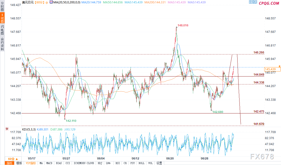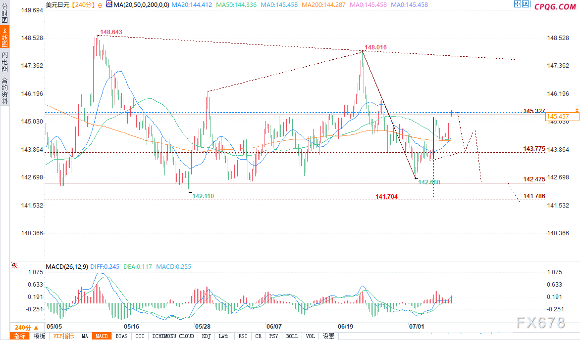 北京时间19:06,美元/日元报145.401/412,涨幅0.67%。