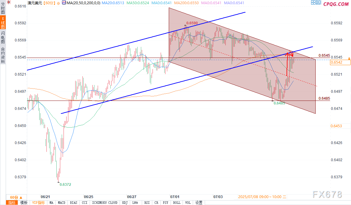 尽管价格一度升至0.6545水平上方,但这一区域未来可能成为阻力位。