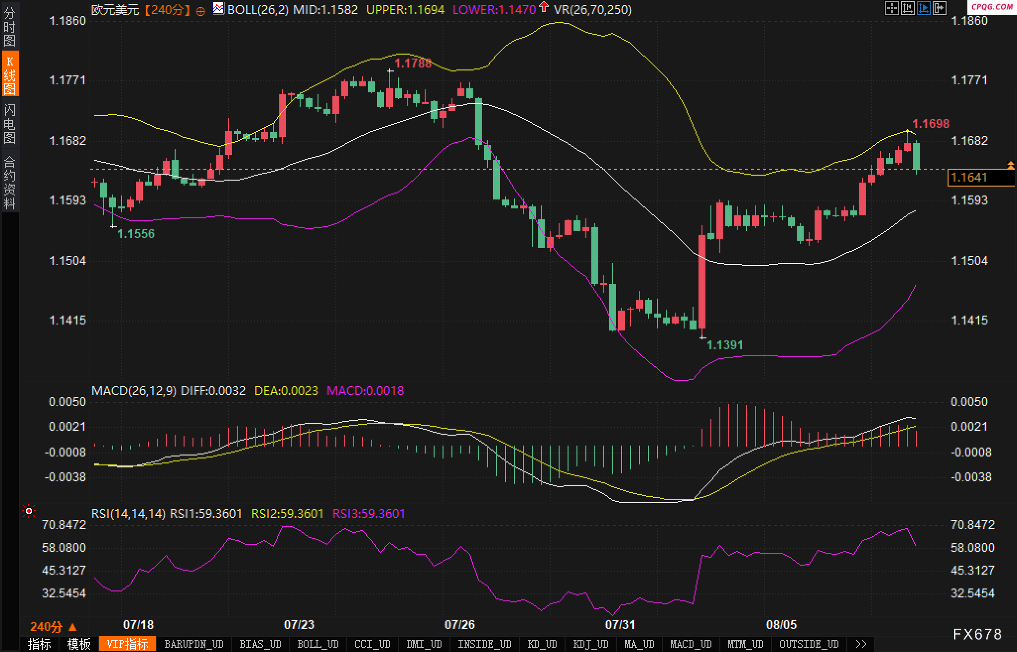 整体来看,技术面展现出强势整理后的向上突破迹象,短线若能有效突破1.1698阻力,则汇价有望进一步挑战1.1788水平。反之,若高位受阻回落,则需关注1.1641和1.1582两个支撑位的防守情况。