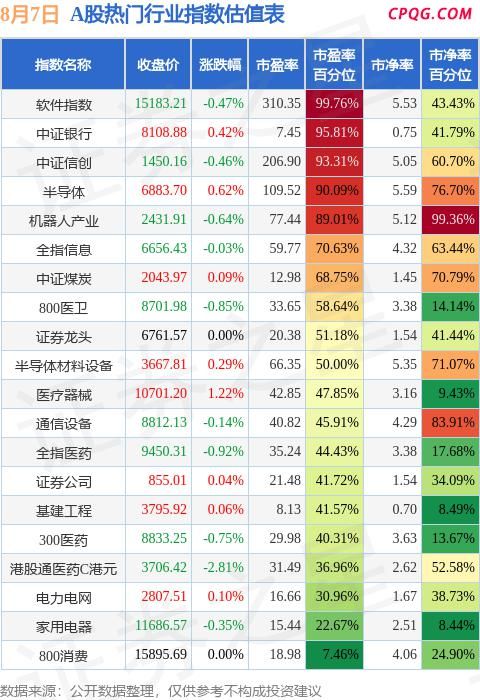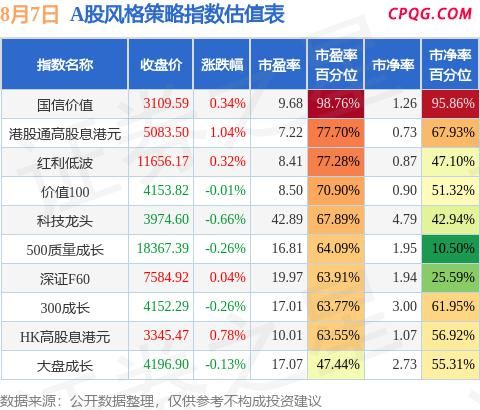 8月7日A股指数最新估值汇总