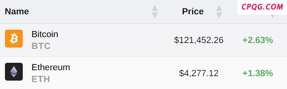 截至下午5:30左右,比特币的价格为121452美元,上涨了2.63%。与此同时,其他加密货币价格也出现大幅度的上涨,如以太坊价格上涨了1.38%。