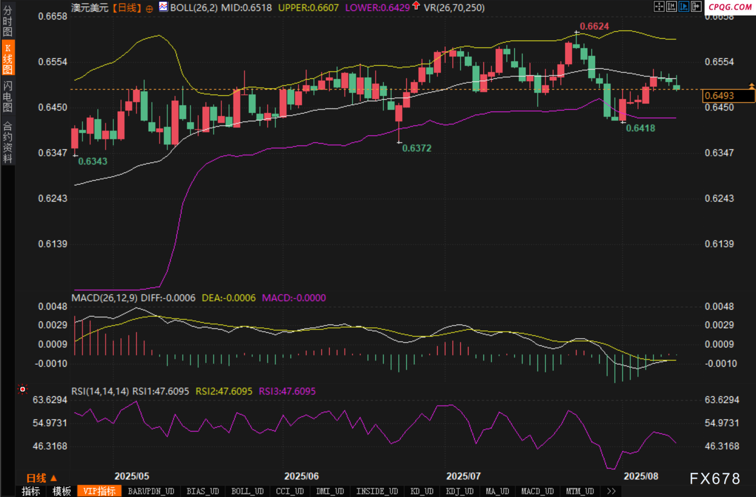 美元方面的表现则相对复杂。尽管美元在过去两个交易日录得涨幅,但其上涨动能受到市场对联邦储备委员会将在9月重启降息周期预期升温的制约,这为澳元兑美元汇价提供了一定支撑。近期一系列令人失望的美国经济数据,包括非农就业报告显示的经济疲软信号,进一步提升了市场对美联储年内至少降息两次的预期。这种预期,结合市场潜在的风险偏好情绪,削弱了美元的避险地位,从而限制了风险敏感的澳元的下行空间。