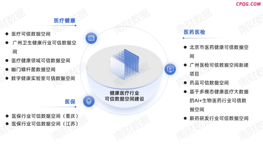 在已公开披露的建设项目中,健康医疗行业部署最深入、数量最多,尤其京广两地积极打造医疗医药可信数据空间。如北京电子数智科技有限责任公司与中日友好医院联合打造医疗可信数据空间;广州市卫生健康委员会牵头建设广州卫生健康行业可信数据空间,发布了5个数据产品和28个高质量数据集。