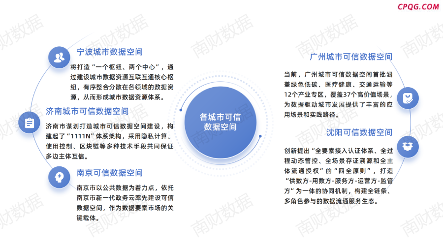 公开可查询信息显示,全国已有沈阳、济南、宁波、广州、南京、哈尔滨等超十个地区开展城市可信数据空间建设。其中,沈阳市作为东北地区首个启动建设可信数据空间的省会城市,创新提出全要素接入认证体系、全过程动态管控、全场景存证溯源和全主体流通授权的原则,构建全链条、多角色参与的数据流通服务生态;济南市打造可信数据空间平台,助力金融服务、医疗健康、社会治理等重点行业建设,已为多家运营单位提供了金融反欺诈、群租房智能识别、住院感知、商业选址等应用场景支撑。