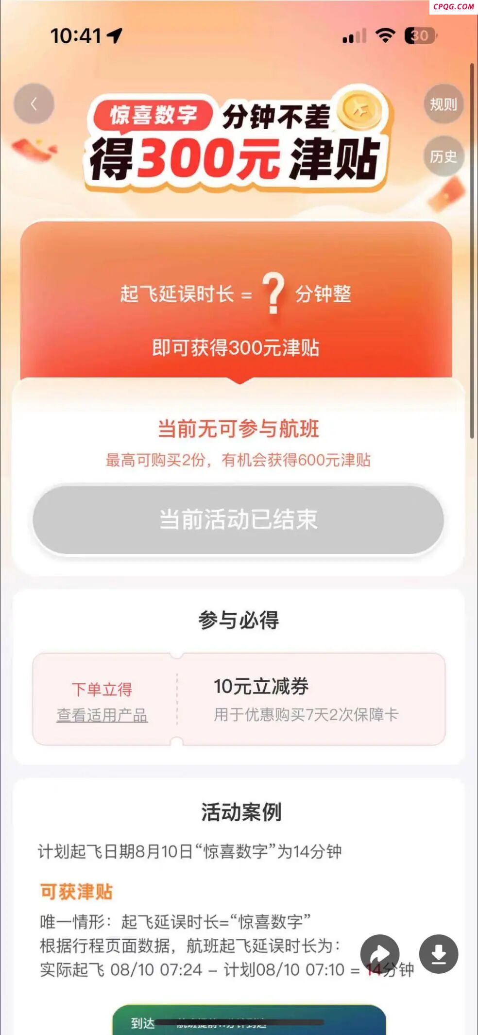 根据旅客提供的截图,记者注意到,航旅纵横均明确提示该产品的理赔条件是延误时间等于惊喜数字,即可获300元津贴。如消费者购买前会看到页面显示,顶部文字写道“惊喜数字,分钟不差,得300元津贴”。购买页面底部,航旅纵横也提供了活动案例,举例说明,如计划起飞日期8月10日“惊喜数字”为14分钟,可获得津贴的唯一情形是起飞延误时长=“惊喜数字”。其他情形,如起飞延误时长小于或大于“惊喜数字”,则不可获得津贴。