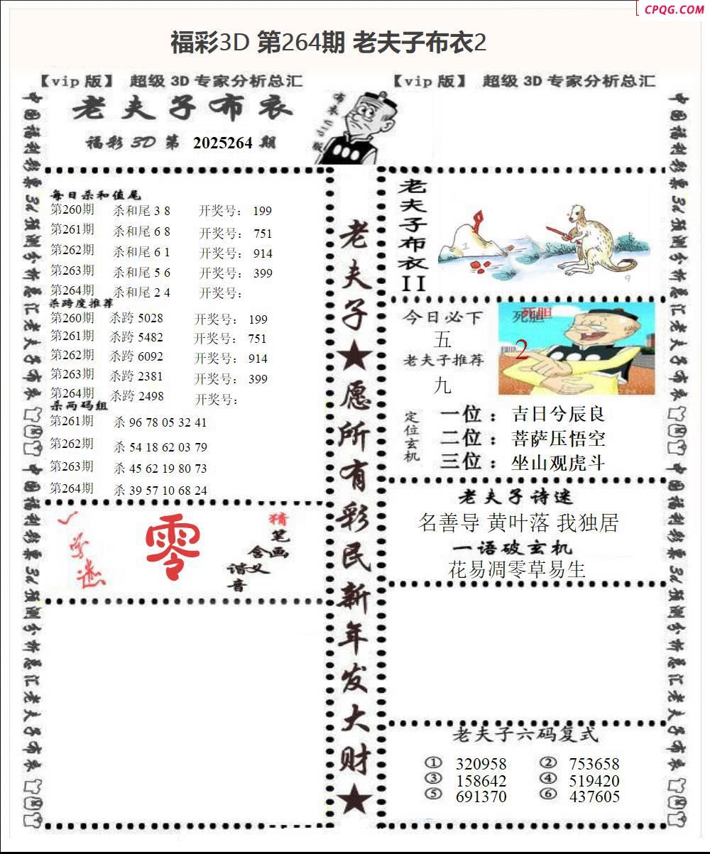 老夫子布衣2025264期3d图谜