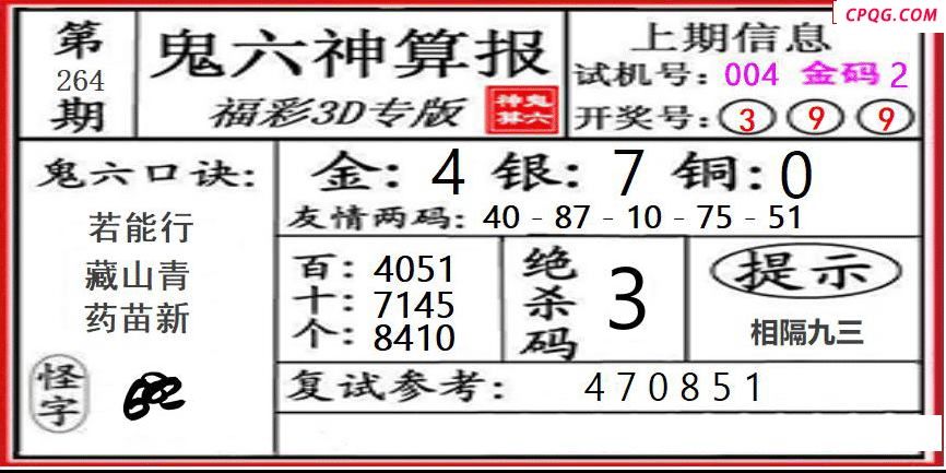 鬼六神算2025264期3d图谜