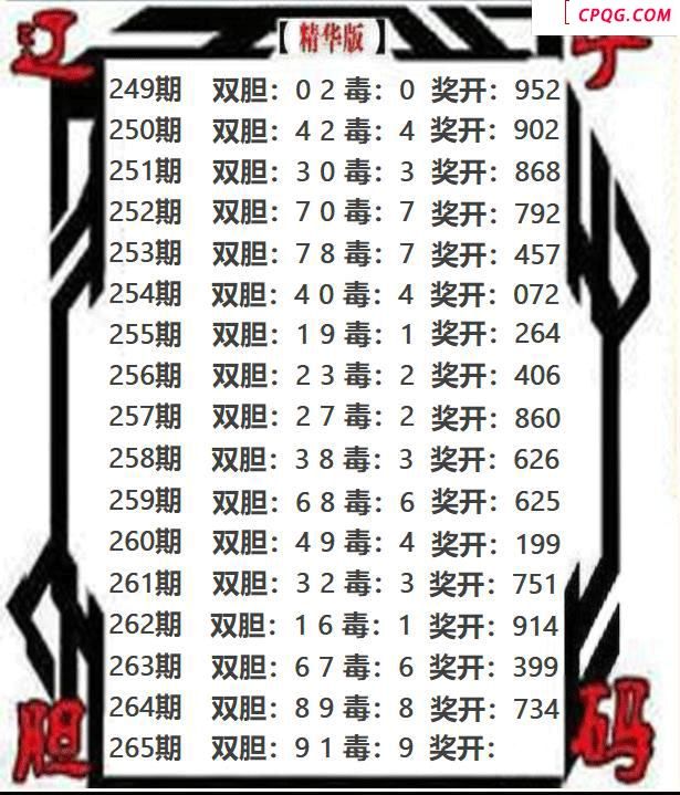 辽宁双胆2025265期3d图谜