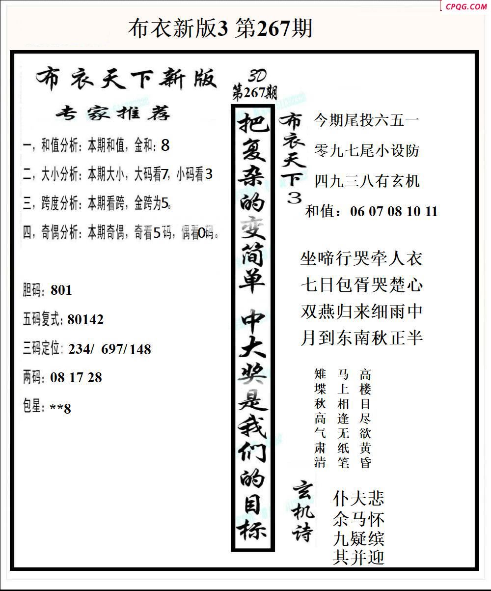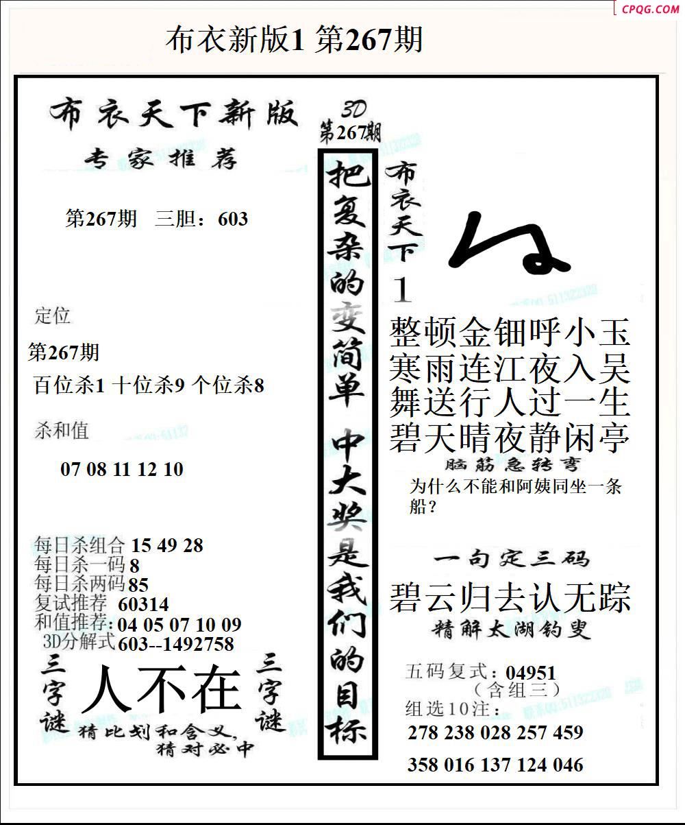 布衣天下新版2025267期3d图谜