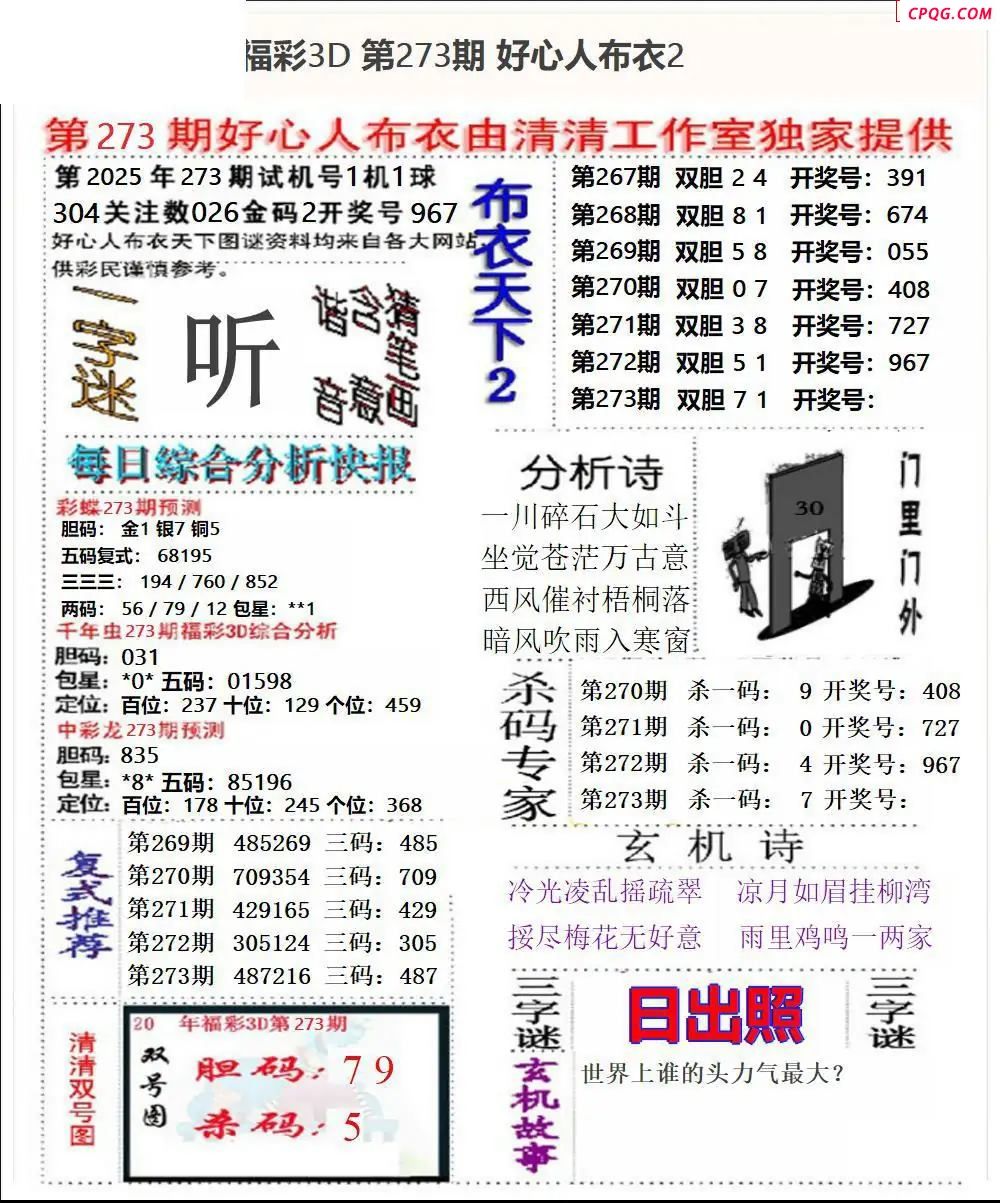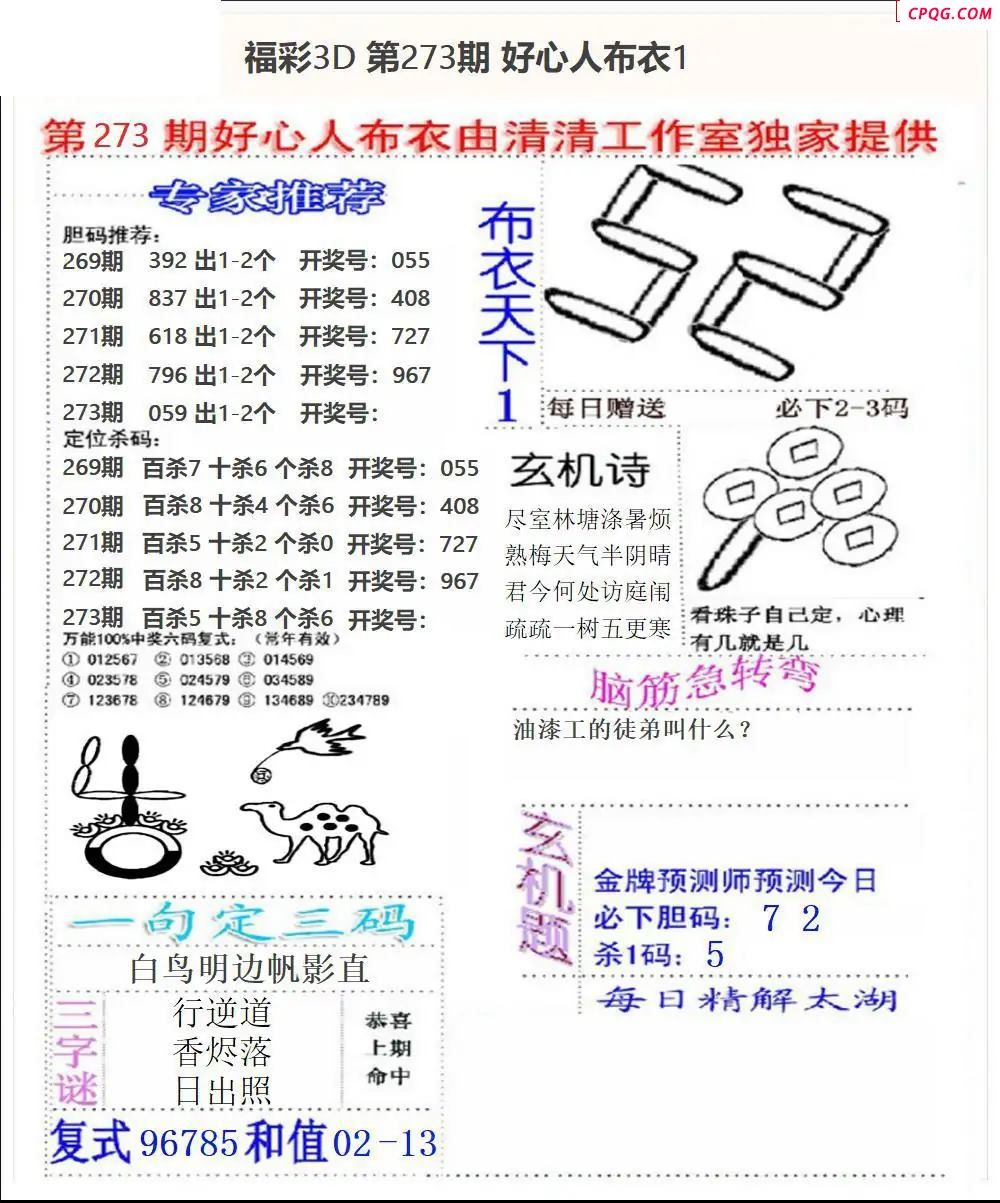 好心布衣20252733d图谜