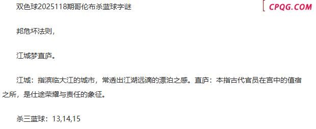 25年福彩双色球118期 哥伦布一句杀蓝球字谜