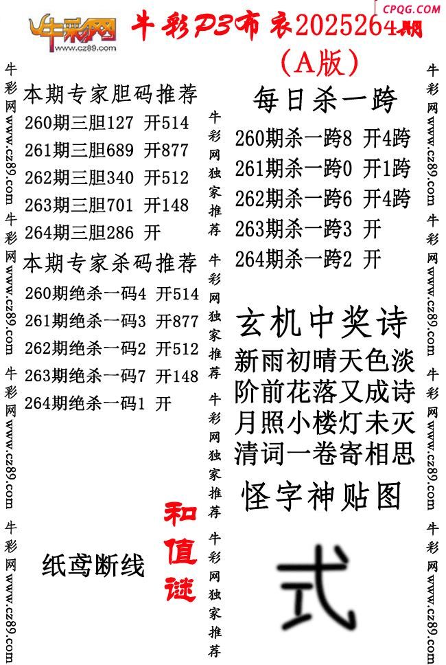 牛彩P3布衣25年264期AB版图谜(精华版)