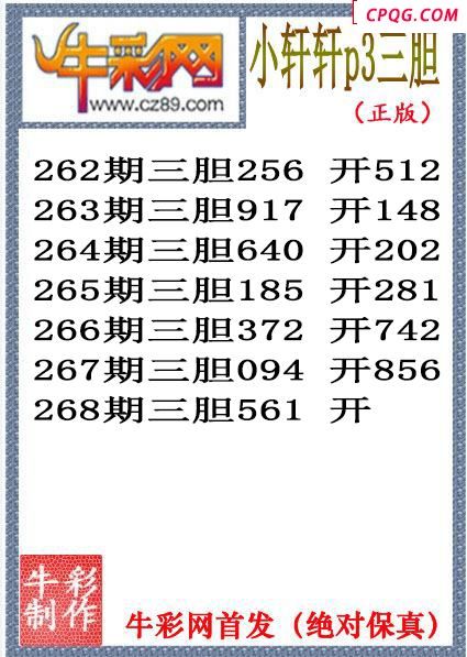 小轩轩三胆268期体彩P3图谜(原创)