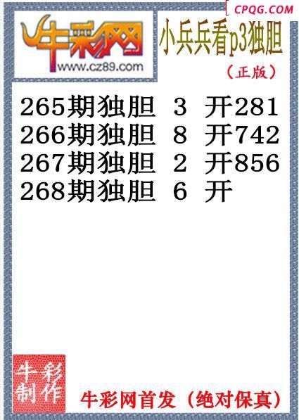 小兵兵独胆268期体彩P3图谜(原创)