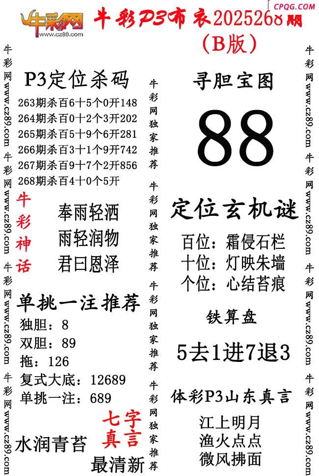 牛彩P3布衣25年268期AB版图谜(精华版)