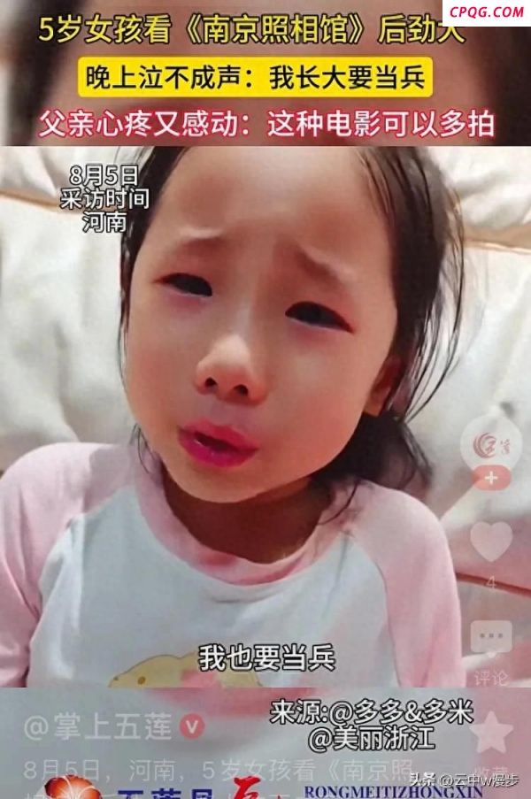 5岁女孩看《南京照相馆》后泣不成声:我长大要当兵,不管死不死