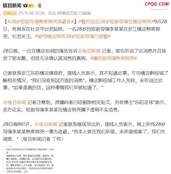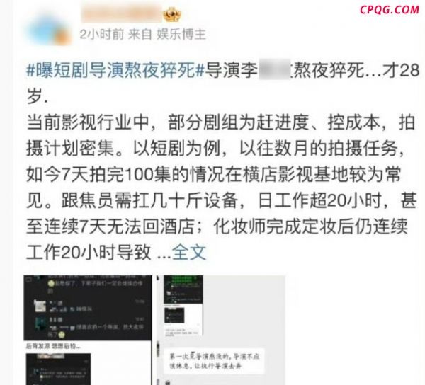 9月29日,娱乐圈28岁短剧导演熬夜猝死的消息持续发酵。