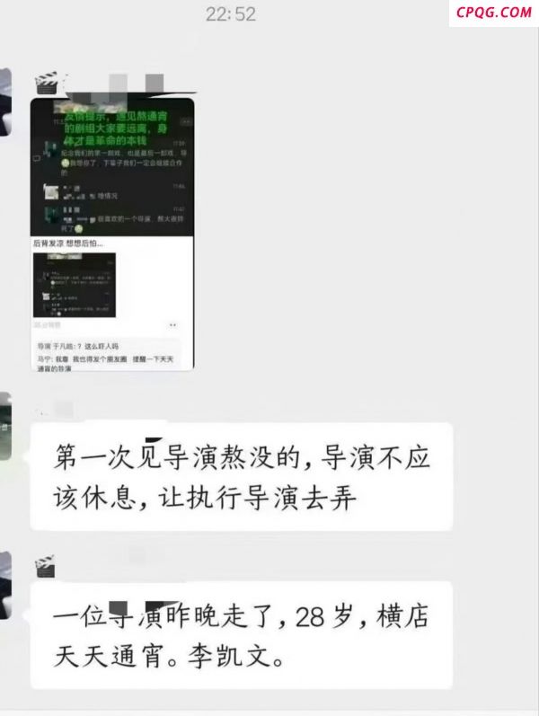 随后,八卦媒体晒出聊天记录,进一步 "证实" 有导演熬夜猝死,甚至称朋友圈已流传悼念信息。