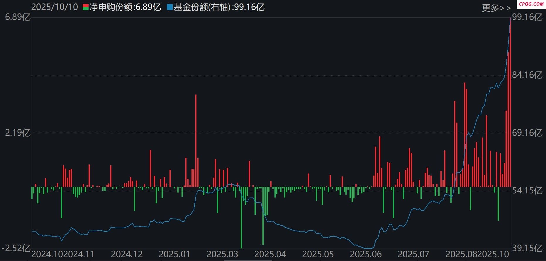 此外,有色金属板块节后大涨逾4%,有色金属ETF(512400)份额逼近百亿,创上市新高。