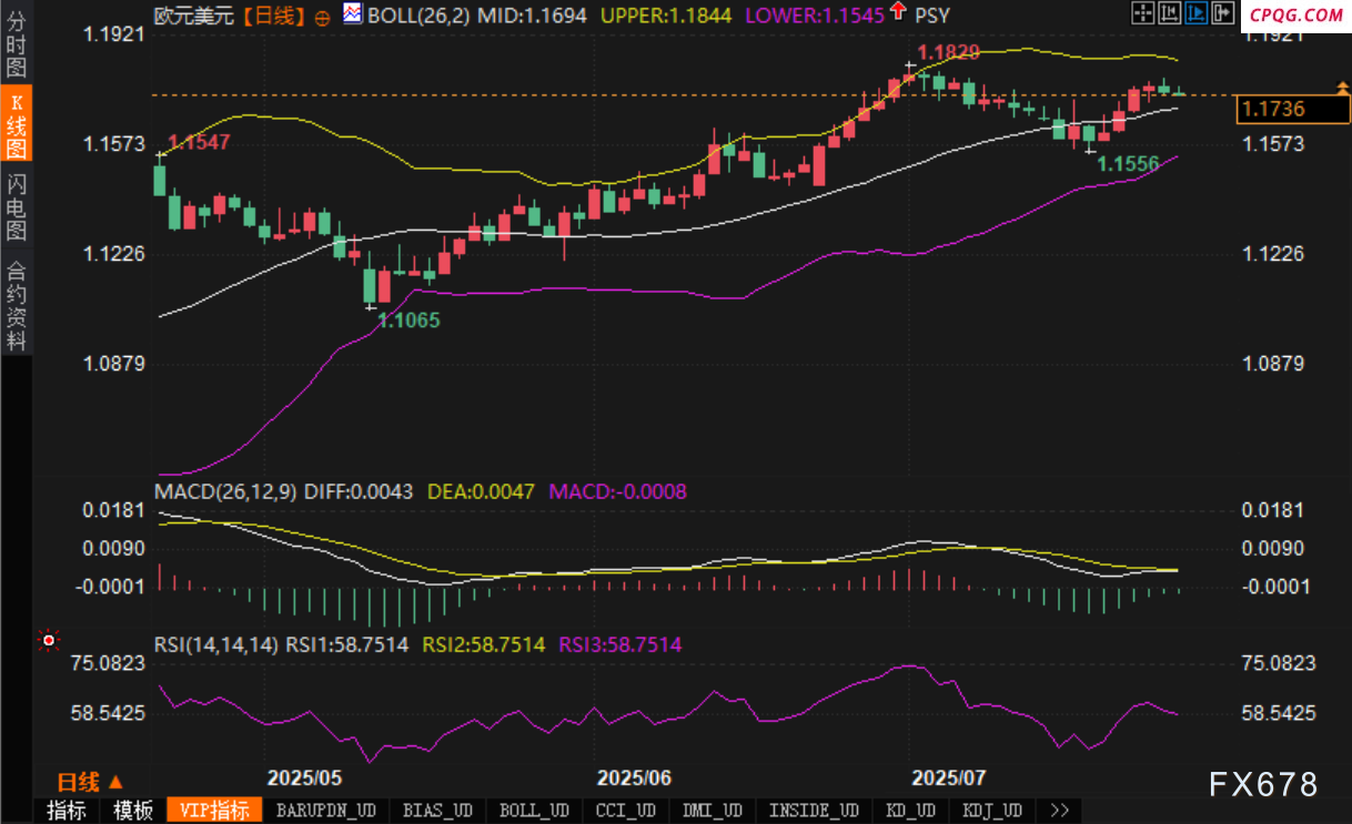 此外,据市场传言,欧盟与美国正在敲定一项贸易协议,其中涉及关税下调及部分商品豁免(如汽车、酒类等),若落实将有助于提振欧元中期前景。这些消息使得汇价在高位维持相对稳固的震荡格局。