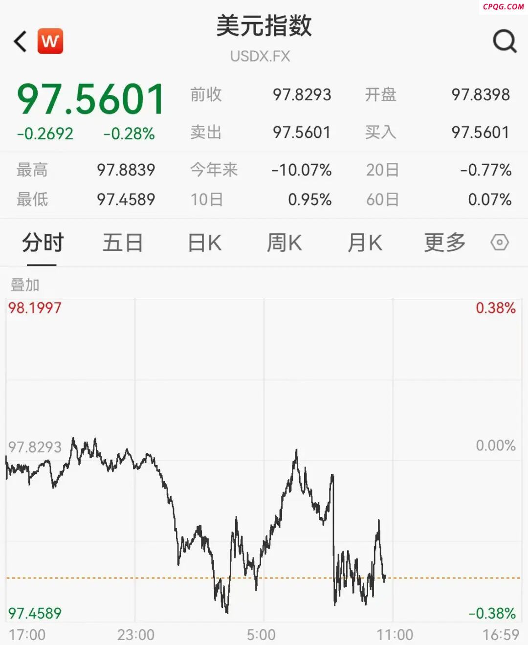 美元指数盘中急剧跳水,跌幅一度超0.3%。