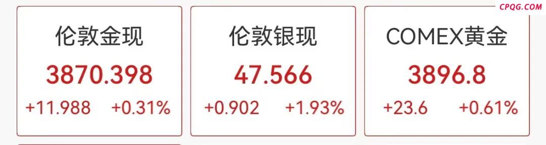 现货黄金涨幅收窄,最新报3870.398美元/盎司,日内曾一度站上3895美元关口。现货白银涨幅扩大近2%,报47.566美元/盎司。