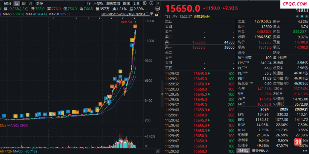 10月7日(周二),日本股市整体进一步上行,盘中再创历史新高。