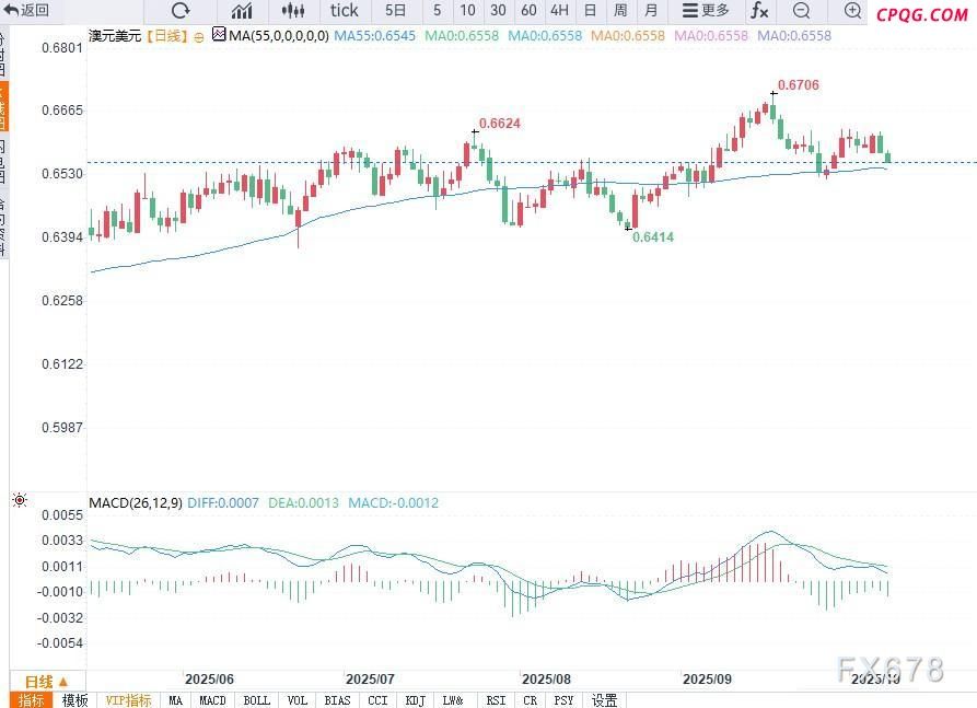 从技术角度看,澳元若失守0.6560将转为中期看空;若守稳该区间,仍可能迎来技术性反弹。短期内,市场焦点仍在美国政府停摆进展与FOMC会议纪要所释放的政策信号。