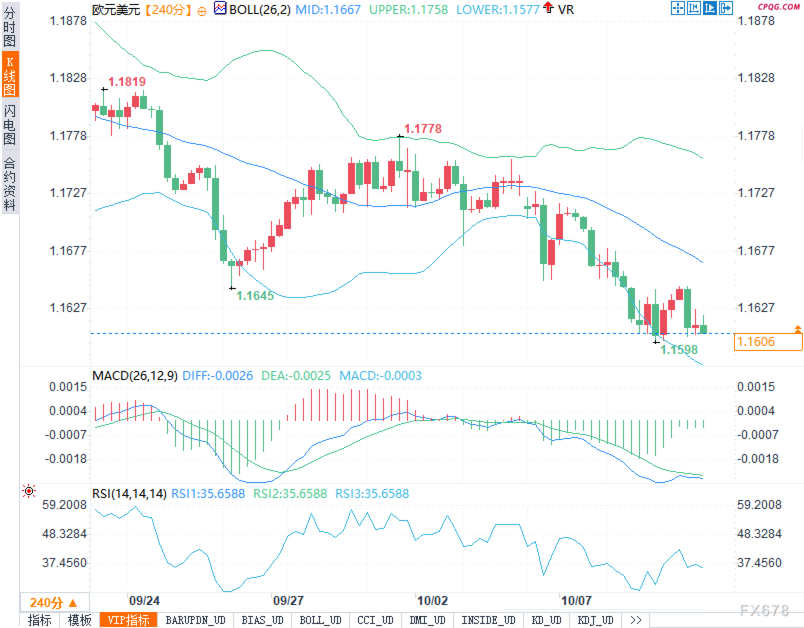 汇通财经APP讯――周四(10月9日),北美时段欧元兑美元围绕1.1600关口反复拉锯。自高点1.1819回落以来,汇价震荡走弱;当前1.16整数位的得失正成为方向选择的临界点。