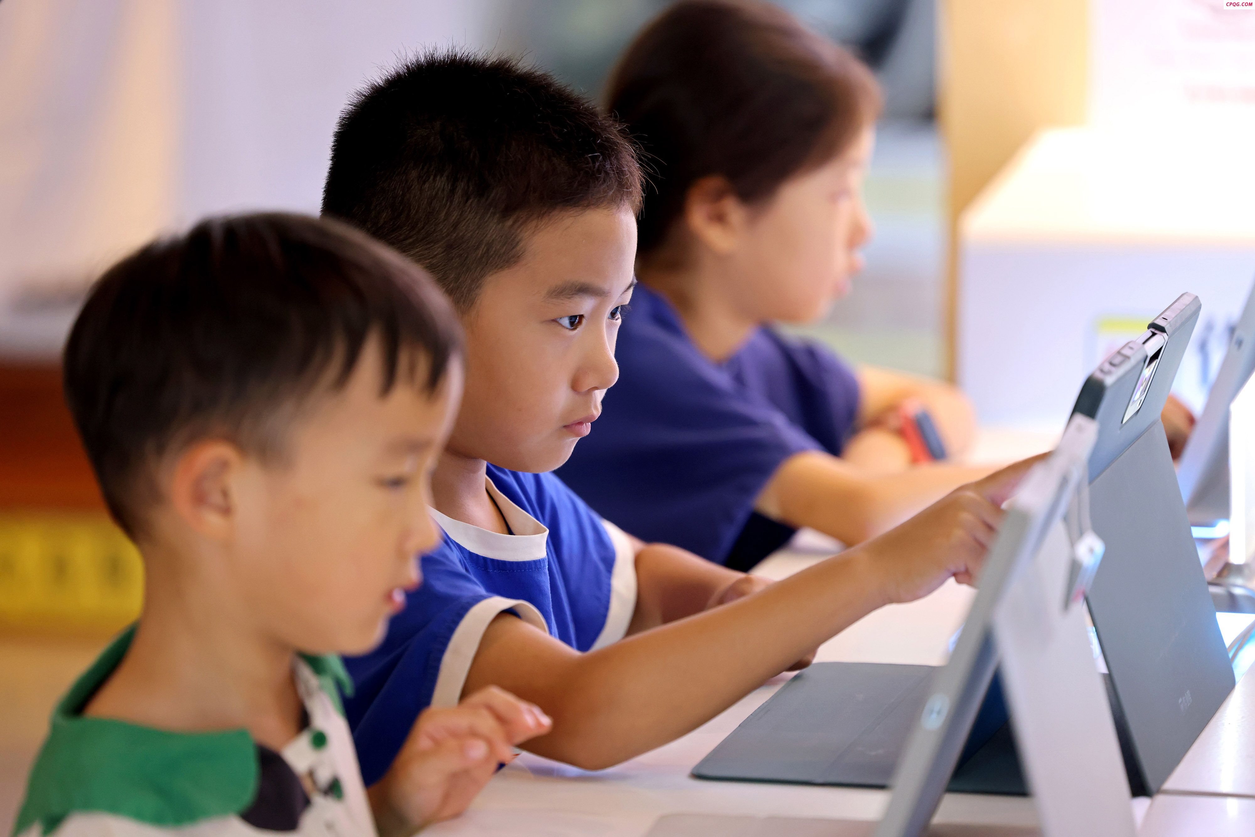 山东省枣庄市鲁南书城,孩子们在阅读电子书。通讯员 孙中喆 摄