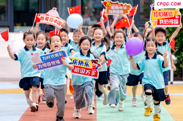 9月29日,浙江省湖州市长兴县水口乡中心幼儿园举行“我与祖国共成长”喜迎国庆系列活动,孩子们参与为祖国母亲送蛋糕、奔跑向未来、与国旗合影等环节,厚植爱国情怀,喜迎国庆节。中国教育报-中国教育新闻网通讯员 谭云俸 摄