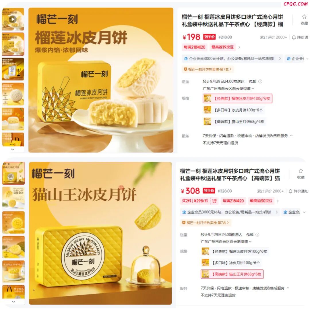 不同品牌的“榴莲月饼”,每100克价差超10倍
