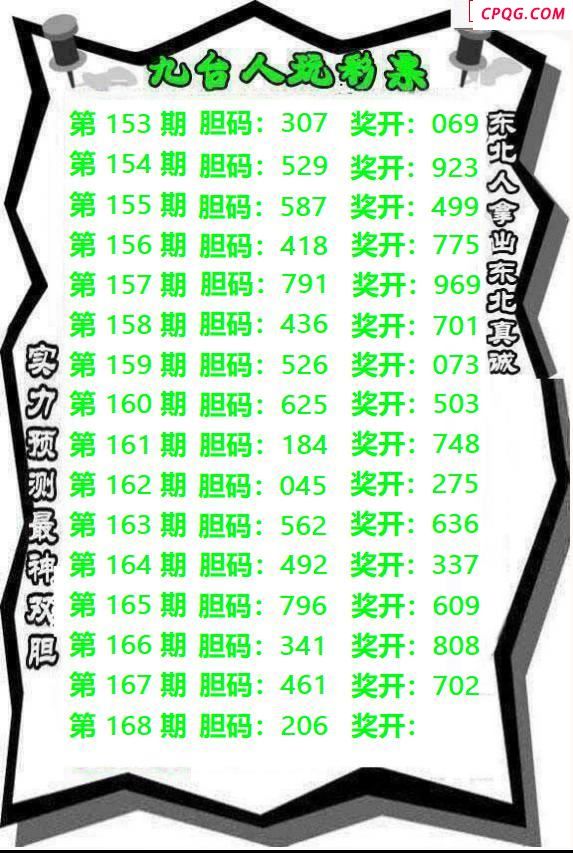 九台胆码2025168期3d图谜