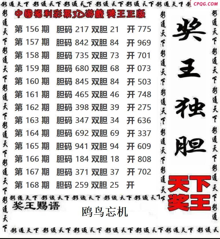 天下奖王2025168期3d图谜