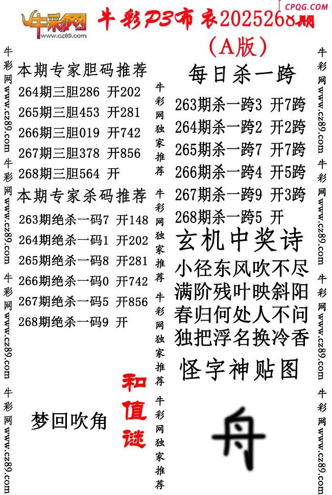 牛彩P3布衣25年268期AB版图谜(精华版)