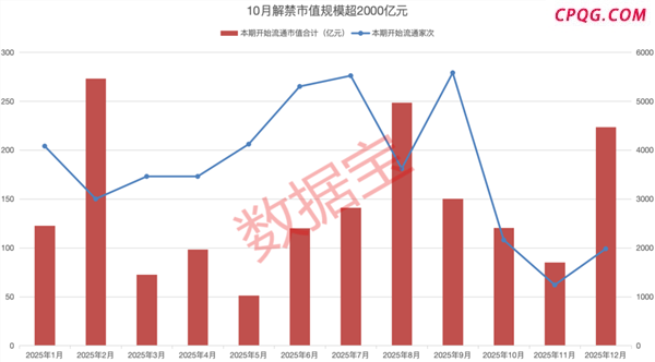 据证券时报·数据宝统计,10月有107股面临解禁,从市值角度来看,按照最新收盘价计算,10月整月解禁股市值规模为2407.28亿元,解禁压力小于三季度以来的7月、8月和9月。