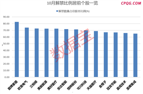 从解禁比例来看,25只个股的解禁比例超50%,箭牌家居、欧圣电气、三柏硕、美能能源等7股的解禁比例居前,均超70%。