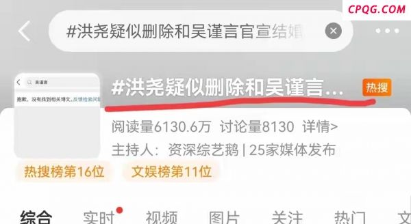 消息一传十十传百,从疑问句变成了陈述句,"洪尧吴谨言离婚"的话题很快冲上热搜。有人翻出吴谨言近期的动态,发现她没再提过结婚的事,更添了几分"可疑";还有人跑到洪尧的评论区留言:"哥,你和谨言还好吗?"